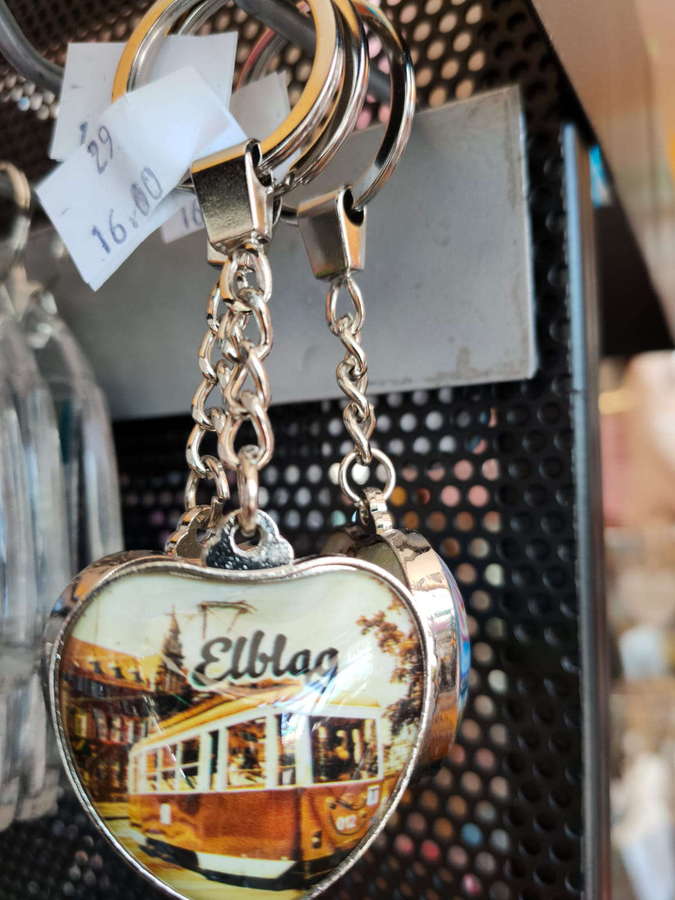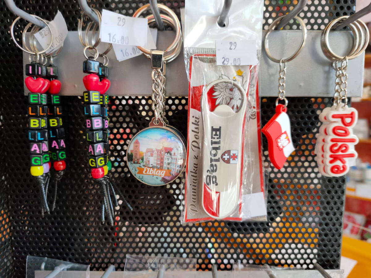 Duży wybór breloków z elbląskim Piekarczykiem, kościołem czy Starym Miastem.